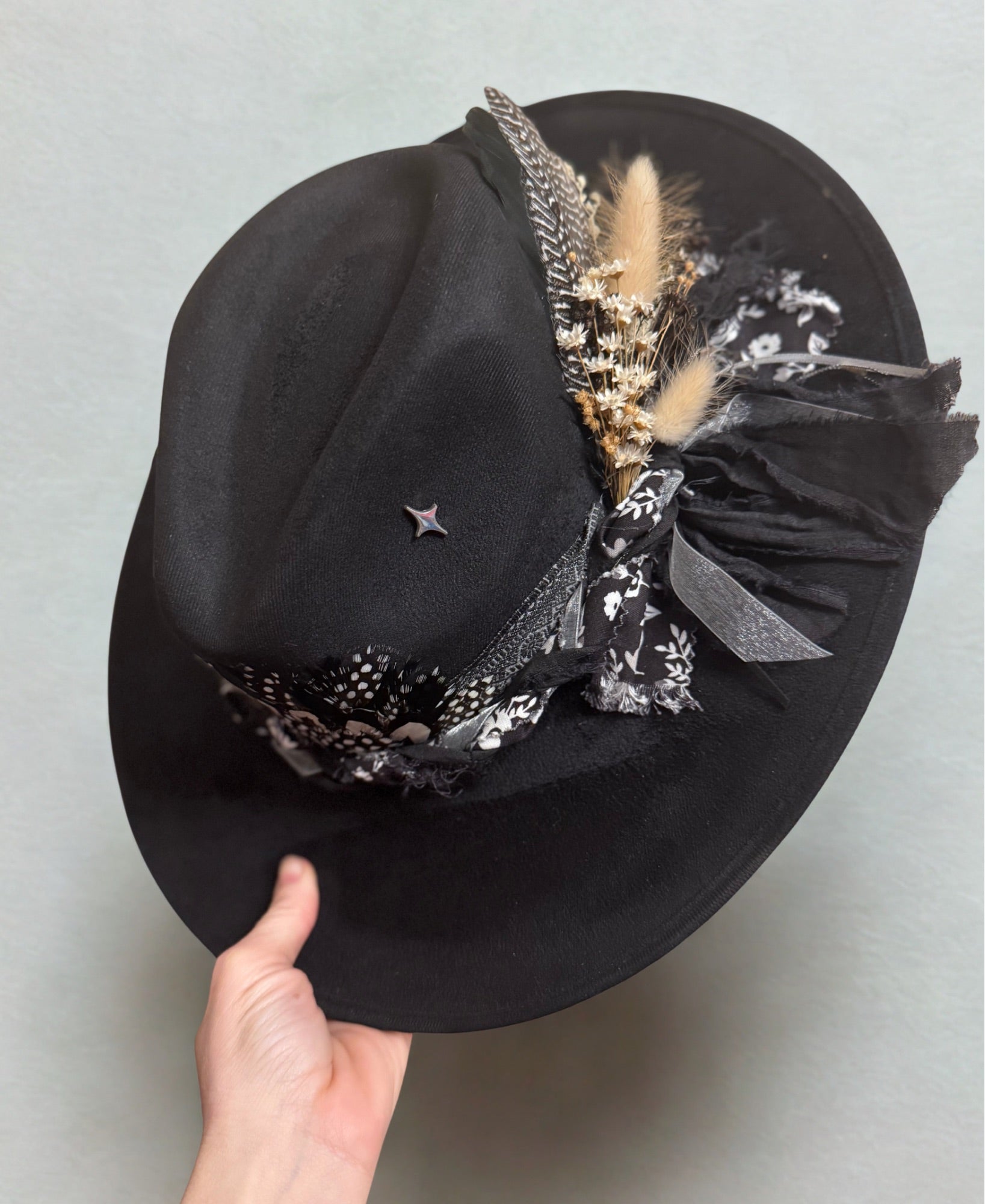 This hat is a small suede style hat.
