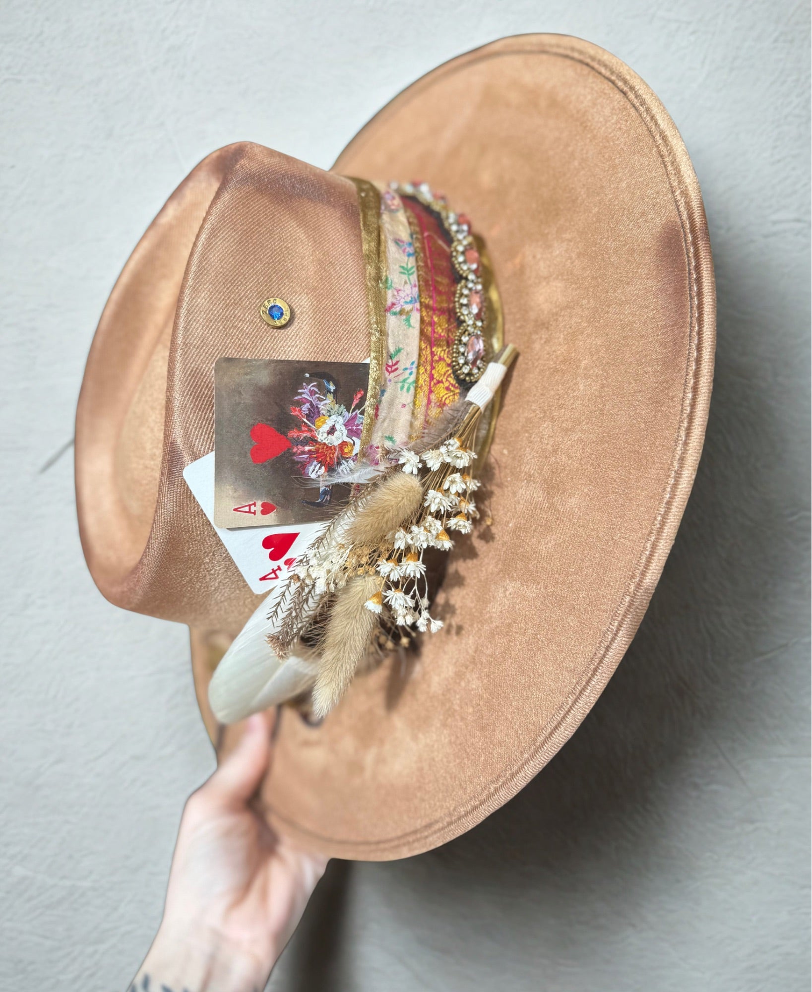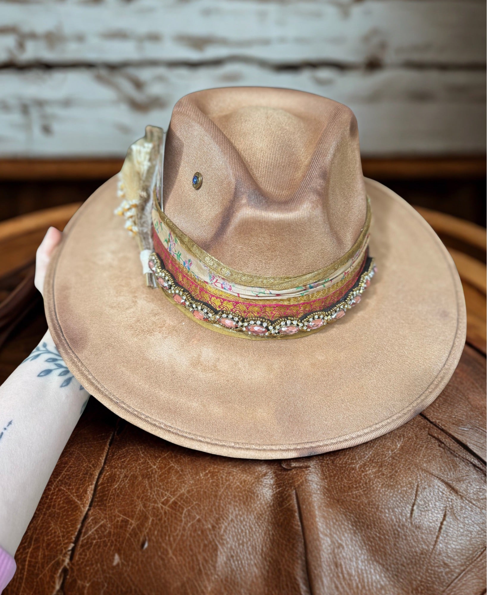 This hat is a large suede style hat.